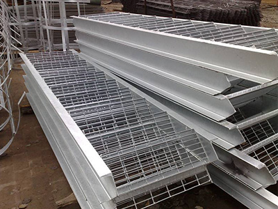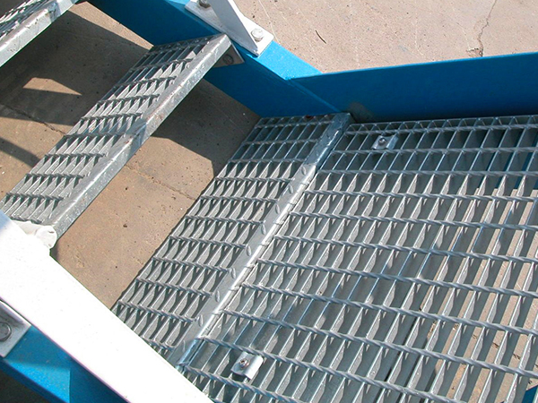 樓梯踏步板是由鋼格柵板加工而成的(鋼格柵板是用扁鋼按照一定的間距和橫桿進(jìn)行交叉排列,并且焊接成中間帶有方形格子的一種鋼鐵制品)。該產(chǎn)品表面一般用熱鍍鋅、電鍍鋅處理。